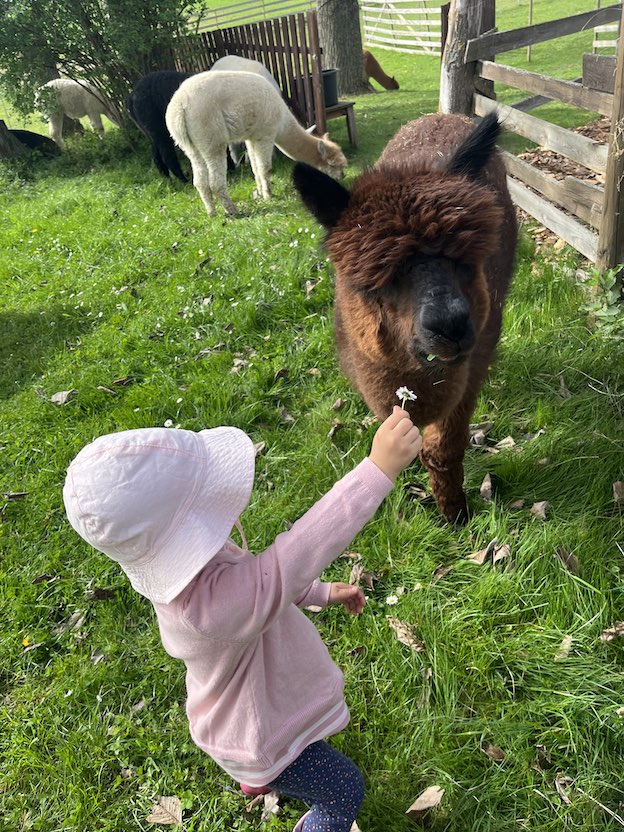 Verhaltensregeln: Unsere Weide ist keine Freizeitwiese. Euer Aufenthalt sollte sich hauptsächlich auf das Beobachten der Alpakas beschränken. Es sind Sitzgelegenheiten und eine Picknickdecke vorhanden.
